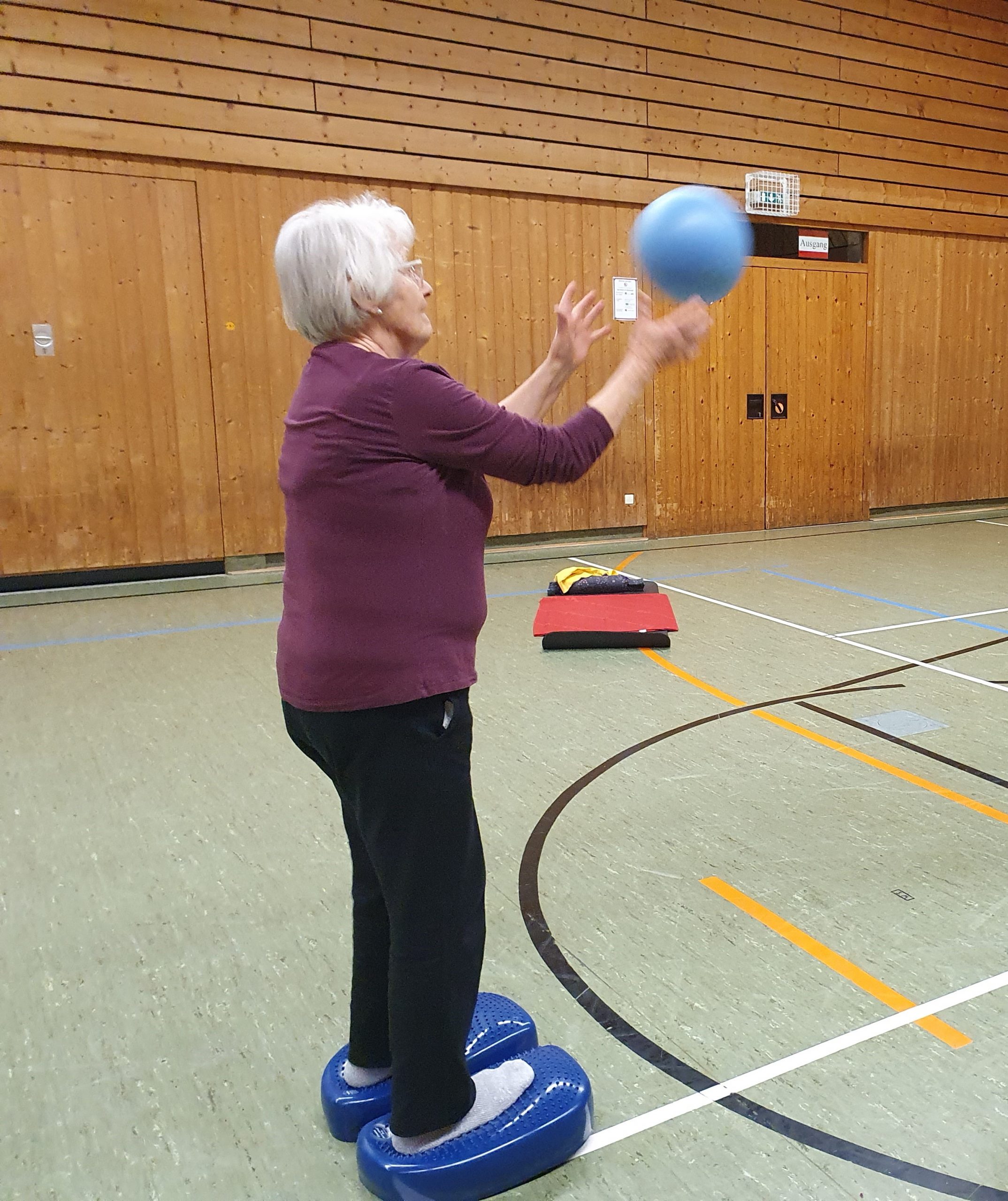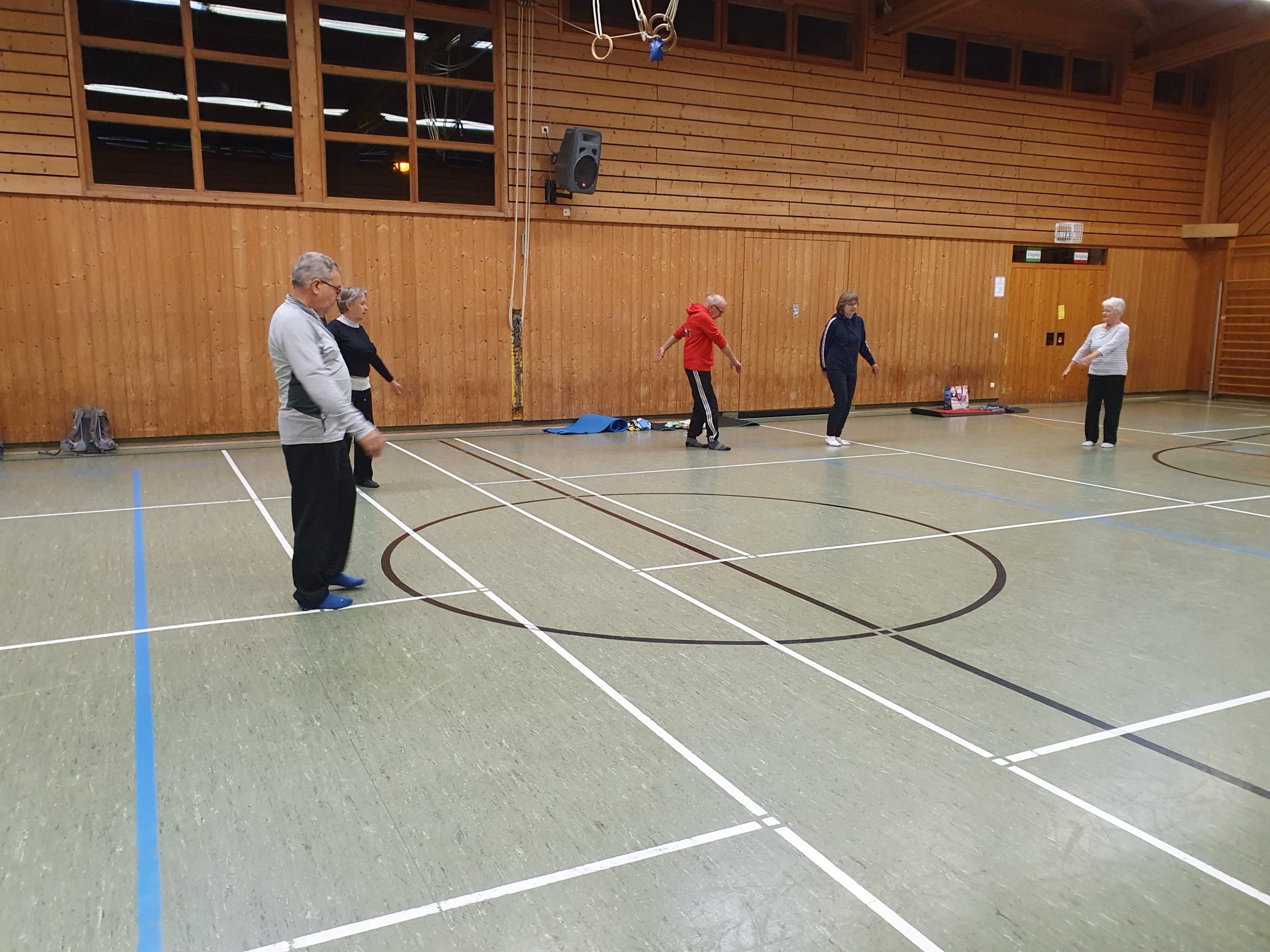 Die gemischte Gruppe jeden Alters will die Beweglichkeit und Koordination verbessern, die Tiefenmuskulatur stärken sowie Stress bewältigen.